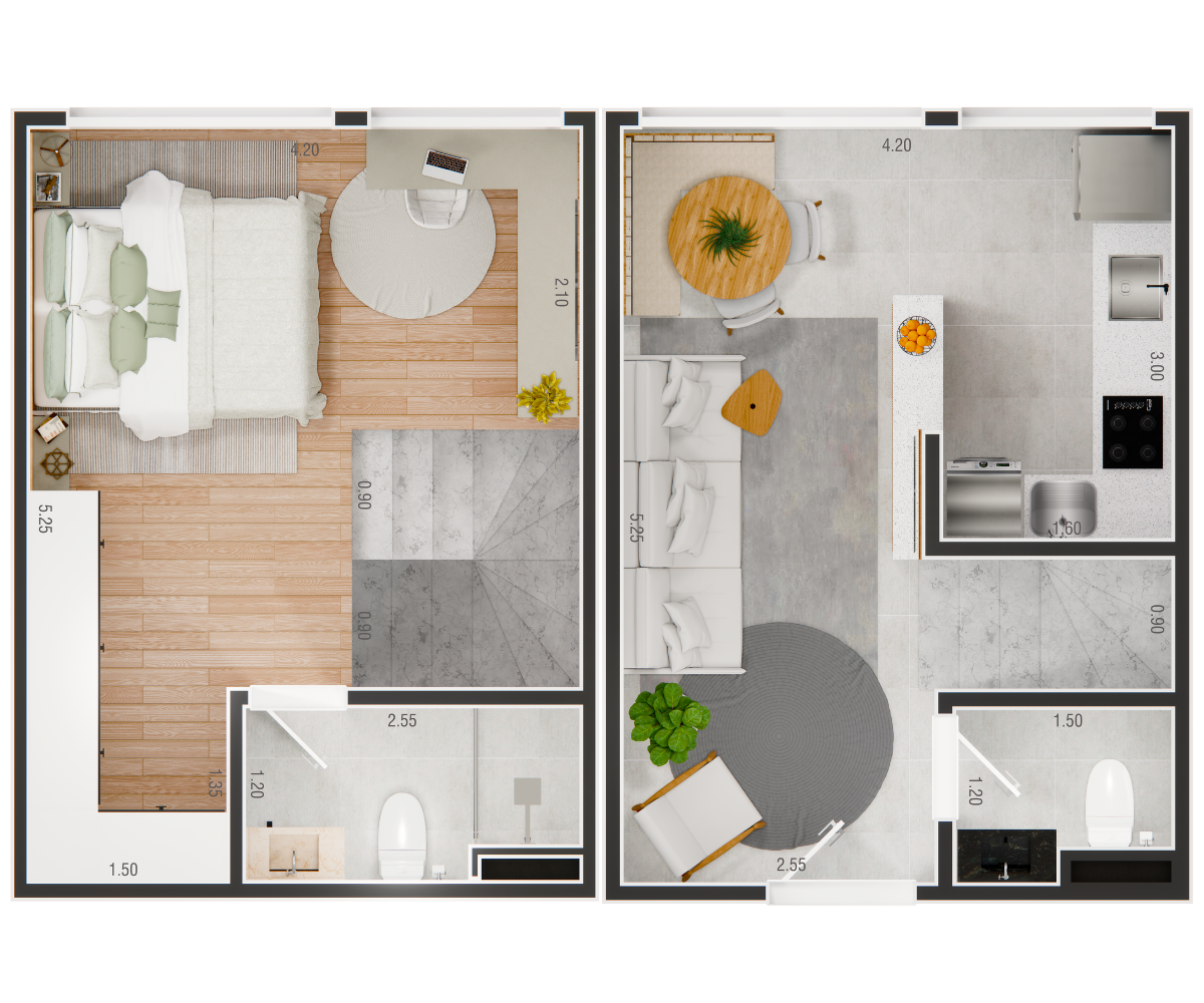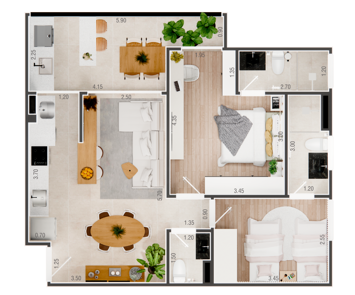 No Vila Plaza, os apartamentos foram projetados com inteligência e funcionalidade, oferecendo ambientes otimizados para garantir seu conforto.